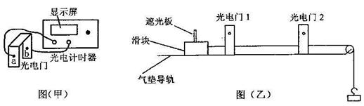 10.(9分)与打点计时器一样,光电计时器也是一种研究物体运动情况时常用的计时仪器,如图(甲)所示,a、b分别是光电门的激光发射和接收装置。现利用如图(乙)所示的装置验证“机械能守恒定律”。方法是:在滑块上安装一遮光板,把滑块放在水平放置的气垫导轨上,通过跨过定滑轮的细绳与钩码相连,连接好1、2两个光电门,在图示位置释放滑块后,光电计时器记录下滑块上的遮光板先后通过两个光电门的时间分别为△t1、△t2。已知滑块(含遮光板)质量为M、钩码质量为m、两光电门间距为s、遮光板宽度为L、当地的重力加速度为g。