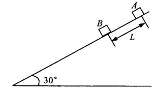 15.(14分)如图所示,在倾角θ=30°、足够长的斜面上分别固定着相距L=0.2m的A、B两个物体,它们的质量为