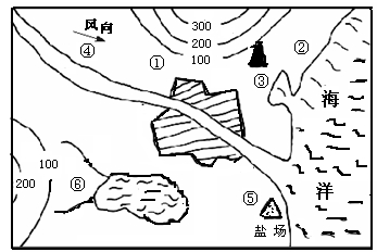 26.(9分)计划在下图①-⑥三处,分别建立化肥厂、罐头厂、自来水厂,各厂应建在何处最合理,并说明理由。