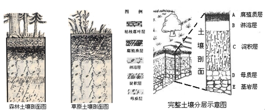 (1)在森林土壤和草原土壤中,具有完整土壤分层示意图中的土壤层是