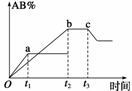 2AB,在温度或压强改变时,AB%的变化如图所示。a为500℃、b为300℃时的情况;