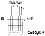 (3)在右图所示实验装置中,石墨棒上的电极反应式为 ;如果起始 时盛有1000mL pH=5的硫酸铜溶液(25℃,CuSO4足量),一段时间后溶液的pH变为1,此时可观察到的现象是 ;若要使溶液恢复到起始浓度(温度不变,忽略溶液体积的变化),可向溶液中加入 (填物质名称),其质量约为 。