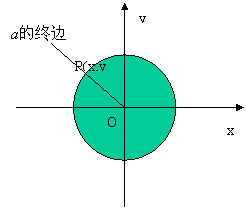 显然,我们只需在角的终边上找到一个点,使这个点到原点的距离为1,然后就可以类似锐角求得该角的三角函数值了.所以,我们在此引入单位圆的定义:在直角坐标系中,我们称以原点