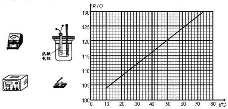 ⑶(2分)实验小组算得该热敏电阻在不同温度下的阻值,并据此绘得上图的R-t关系图线,请根据图线写出该热敏电阻的R-t关系式:R= + t(Ω)(保留3位有效数字)