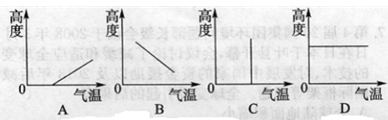 7、气温随高度变化会影响大气的稳定性,从而影响大气污染物的聚集与扩散。下面图示气温与高度关系得四种情况中,最容易导致大气污染物聚集的是( )