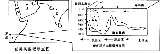 8、此实验过程可模拟 A、温室效应 B、锋面系统 C、逆温效应 D、热力环流 读世界某区域示意图及印度洋沿赤道纵剖面图,回答9-10题。