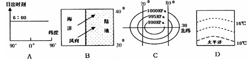 29、横渡队即将横渡的地点中,属于板块生长边界的是( ) A、甲 B、乙 C、丙 D、丁 30、当墨累-达令盆地的农民开始剪羊毛时,图中等温线走向最符合新西兰实际的是( ) A、① B、② C、③ D、④ 图中①-④箭头分别表示洋流的流向。读图回答