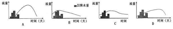 25、当黄土高原植被恢复后,黄河中游大雨后的流量曲线将会是下图中的( )