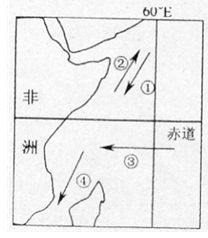 9、当上面右图中a处的上升流最强烈时,下列四幅图中能反映北印度洋地区季节的是( )
