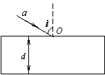 ⑶(4分)如图所示,一单色光束a,以入射角i=60°从平行玻璃砖上表面O点入射.已知平行玻璃砖厚度为d =10cm,玻璃对该单色光的折射率为n =