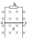 (15分)如图所示,两根足够长的光滑金属导轨,相距为L=10cm,竖直放置,导轨上端连接着电阻R1=1Ω,质量为m = 0.01kg、电阻为R2 =0.2Ω的金属杆ab与导轨垂直并接触良好,导轨电阻不计.整个装置处于与导轨平面垂直的磁感应强度为B =1T的匀强磁场中.ab杆由静止释放,经过一段时间后达到最大速率,g取10m/s2,求此时: