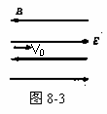 如图8-3所示,区域中存在着匀强磁场和匀强电场,且两者平行,但方向相反,质量为m 电量为-q的粒子(不计重力)沿电场强度方向以v0射入,下述说法正确的是( )