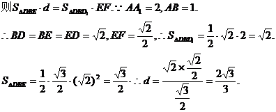 由(Ⅰ)知EF⊥面DBD1 ,设点D1到面BDE的距离为d.