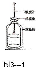 [例2](2009福建理综).图3---1表示的是测定保湿桶内温度变化实验装置。某研究小组以该装置探究酵母菌在不同条件下呼吸作用的情况。材料用具:保温桶(500mL)、温度计活性干酵母、质量浓度0.1g/mL的葡萄糖溶液、棉花、石蜡油。