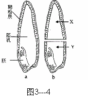 实验:供选材料--表面消毒的干燥大麦种子若干粒,将种子横切成两部分(X部分无胚,Y部分有胚),如图3---4(b)所示。