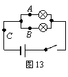 进行实验:如图13连接电路,闭合开关,记录A、B、C各点的电流值如下表所示