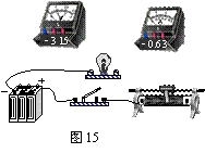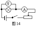 某班同学到实验室做“测定小灯泡额定功率”的实验。被测小灯泡的额定电压为3.8 V,电阻约为10 Ω。实验室有如下器材:电源(电压为6 V)、电流表(0~0.6 A 0~3 A)、电压表(0~3 V 0~15 V)、滑动变阻器R(10 Ω 0.5 A),开关各一只,导线若干。同学们设计的电路如图14所示: