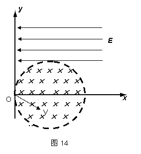 角(如图14所示)射入磁场的质子,到达y轴的位置坐标,并画出质子运动轨迹的示意图。