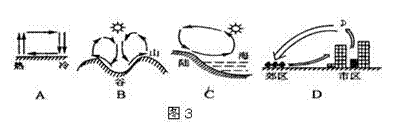8.图2中四幅冷热不均引起的大气运动图,图中曲线和直线表示等压面,正确的有 ( )