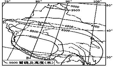 42.读图9我国西部雪线高度分布图,回答下列问题。