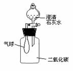 8、如图,准备好双孔塞(插有带小气球的短玻璃管和盛有澄清石灰