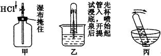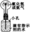 用干燥的圆底烧瓶收集满瓶的气体,用上述塞子塞紧。立即倒置烧瓶,把玻璃管放进盛有水的烧杯(氯化氢的喷泉实验滴加紫色或蓝色石蕊试液,氨气的喷泉实验滴加酚酞试液);