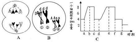 (2)B细胞中染色体①与②的分离发生在C图的 阶段,染色体①上基因D与突