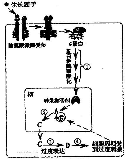 导致细胞周期启动并过度分裂(图中字母表示物质,数字表示生理过程)。