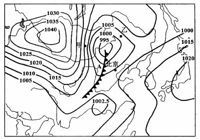 (1)说出甲地的风向。比较甲、乙两地风力大小,并说明原因。(4分)