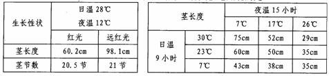 25.下表为光与温度对某植物茎生长的实验结果,有关叙述正确的是