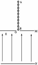 (17分)如图所示,M、N是水平放置的一对金属板,其中M板中央有一个小孔O,板间存在竖直向上的匀强电场.AB是一长9L的轻质绝缘细杆,在杆上等间距地固定着10个完全相同的带正电小球,每个小球的电荷量为q、质量为m,相邻小球距离为L.现将最下端小球置于O处,然后将AB由静止释放,AB在运动过程中始终保持竖直.经观察发现,在第4个小球进入电场到第5个小球进入电场这一过程中AB做匀速运动。求:①两板间电场强度E大小;
