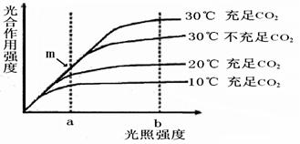 (3)在光照强度为b、温度为200C时,限制光合作用的环境因素是 ,原因是 。如果大棚栽培蔬菜,在这种情况下应采取什么措施有利于蔬菜的生长: ___ _______ 。