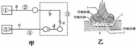 (1)甲图中______代表效应器,③代表 ,该图中有_____个乙图所示结构。