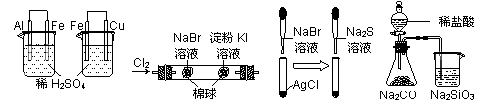 左烧杯中铁表面有气泡,右边烧杯中铜表面有气泡 |