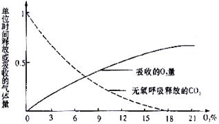I.(1)将水稻幼苗培养在不同氧气浓度的黑暗环境中,分别测得其无氧呼吸释放的二氧化碳量与有氧呼吸消耗的氧气量,获得如图所示结果。
