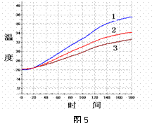 在“探究太阳能转化为内能的效率”学生实验中,研究不同表面对太阳能转化为内能效率的影响。在实验中运用的科学研究方法之一是控制变量法。请举出其中一个被控制的变量是: ;实验得到的三只分别涂黑色、灰色和白色的瓶内温度随时间变化的图线,分别对应的是如图5中的 线、