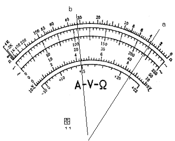 。若最后选定的倍率为“×100”,指针指在如图11中b所示位置,该电阻的阻值为 欧。