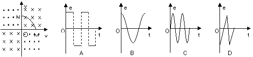 17.如图所示,强度相等的匀强磁场分布在直角坐标系的四个象限里,有一闭合扇形线框OMN,以角速度ω绕坐标原点O在Oxy平面内匀速转动,在它旋转一圈的过程中(从图示位置开始计时),它的感应电动势与时间的关系图像是下图中的哪一个