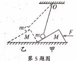 O点,重球置于一个斜面劈M上,用水平力F向左推动