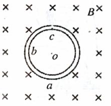 的带正电粒子从紧贴b筒的c点由静止释放,穿过a筒上正对c点的小孔,垂直进入匀强磁场(不计粒子重力)。