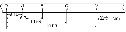 (2)在研究匀变速直线运动实验中,某同学通过打点计时器在纸带上连续打下一些点,取时间间隔均为0.1s的几个点.测量后的结果如下图所示,则纸带被拉动的加速度a= m/s2.