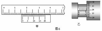 23.贵州省兴义市清华实验学校2010届高三9月月考(1)读出下面图6中游标卡尺与螺旋测微器的读数, 游标卡尺读数为 cm,螺旋测微器读数为 cm。