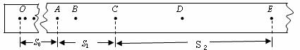 (2)下图是钩码质量为0.03 kg,砝码质量为0.02 kg时得到的一条纸带,在纸带上选择起始点0及A、B、C、D和E五个计数点,通过数据处理可获得各计数点对应时刻小车的瞬时速度v,