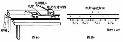 26.浙江省杭州高中2010届高三第二次月考如图(a)所示,小车放在斜面上,车前端拴有不可伸长的细线,跨过固定在斜面边缘的小滑轮与重物相连,小车后面与打点计时器的纸带相连。起初小车停在靠近打点计时器的位置,重物到地面的距离小于小车到滑轮的的距离。启动打点计时器,释放重物,小车在重物的牵引下,由静止开始沿斜面向上运动,重物落地后,小车会继续向上运动一段距离。打点计时器使用的交流电频率为50Hz。图(b)中a、b、c是小车运动纸带上的三段,纸带运动方向如箭头所示。