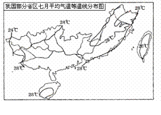 读图 “我国部分省区七月平均气温分布图”,完成4-6题。