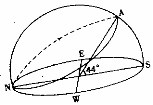 下图是北半球某地某日太阳视运动图,当太阳位于A点时,北京时间为6点。读图,回答7-8题。