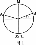 下图为北半球某纬线圈的昼夜分割情况,其中