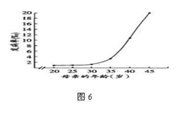 三体综合征患儿的发病率与母亲年龄的关系如图6所示,预防该遗传病的主要措施是 ( )