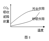 23.图8表示正常的光照强度下,光合作用、呼吸作用受温度影响的曲线图,据图可得出的正确结论是:( )