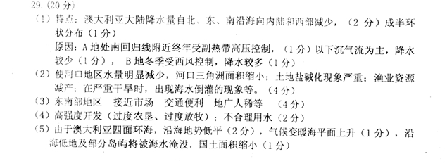 (5)澳大利亚是除美国以外拒绝在《京都议定书》上签字的唯一发达国家,结合其海陆分布和地形分析如果环境持续恶化对国土面积产生的影响?(4分)